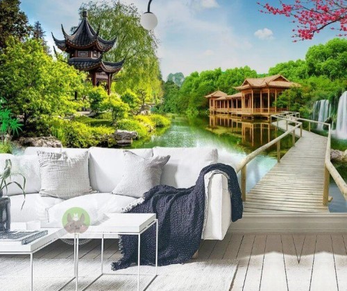 Laminowanie fototapety zapewnia pełną odporność na wilgoć i chroni przed zniszczeniem.