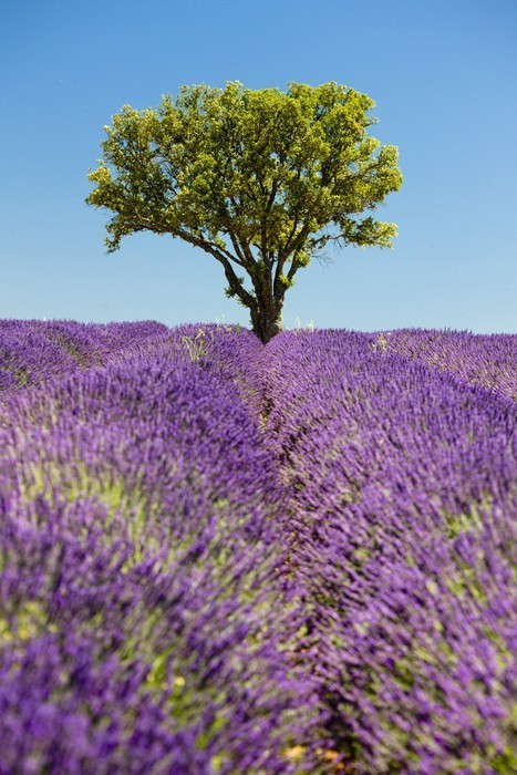 Fototapeta Oszałamiający krajobraz lato lawendowego pola z jednego drzewa słońca